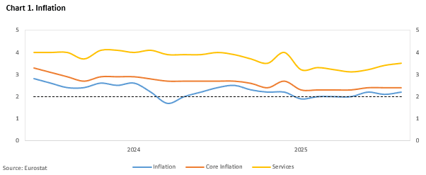 Eurozone inflation ticked up in November, driven by services and less negative energy prices, keeping inflation near 2% and reinforcing expectations that the ECB will hold rates steady.